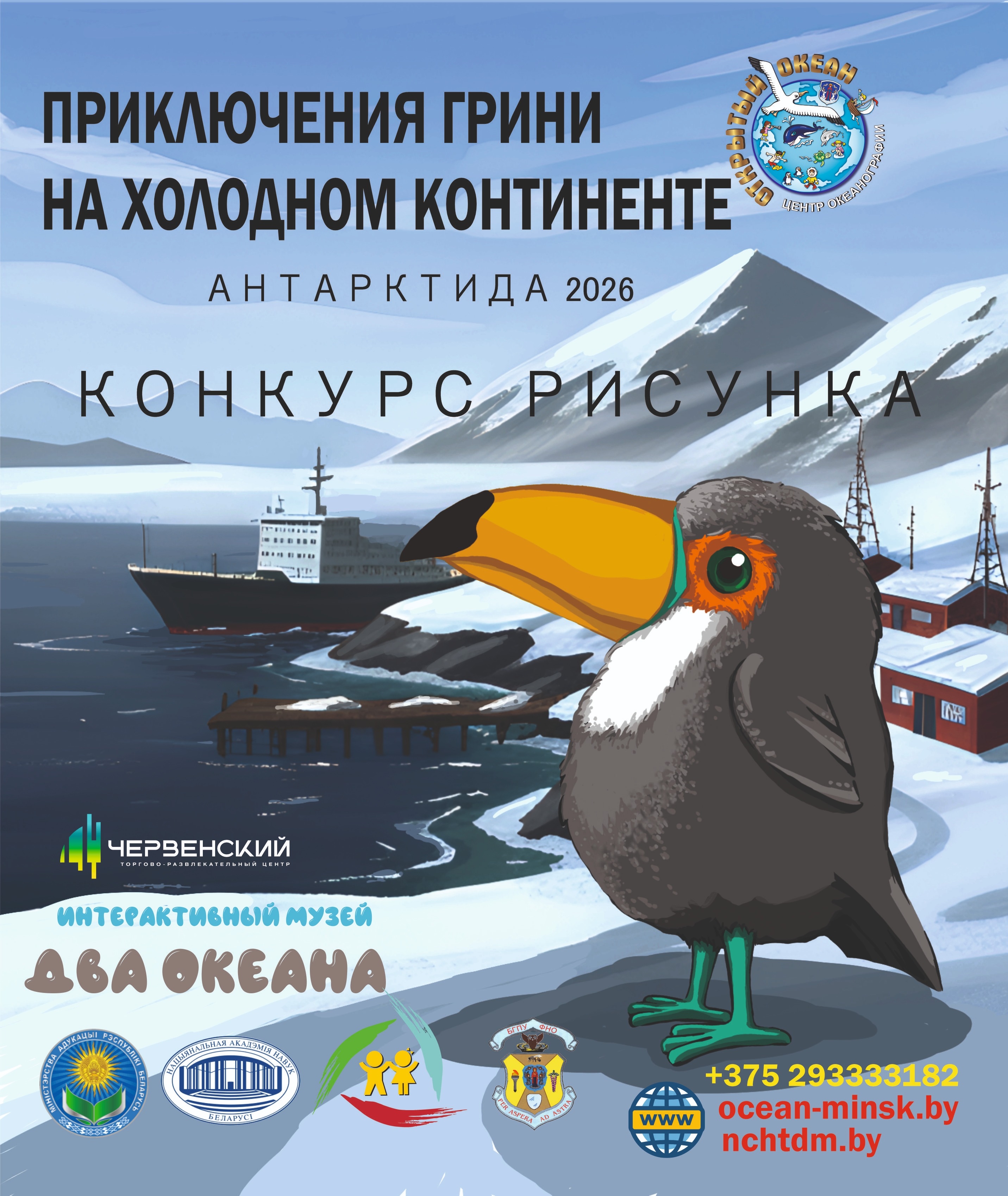 Культурно-просветительское учреждение «Центр океанографии “Открытый океан”» (музей «Два океана») при поддержке Министерства образования Республики Беларусь в лице Национального центра художественного творчества детей и молодежи и партнеров из Национальной академии наук Беларуси, 18 Белорусской Антарктической экспедиции, ГНПО «Научно-практический центр Национальной академии наук Беларуси по биоресурсам», факультета начального образования УО «Белорусский государственный педагогический университет имени Максима Танка» проводит конкурс детского рисунка, посвященный белорусским исследованиям в Антарктиде.